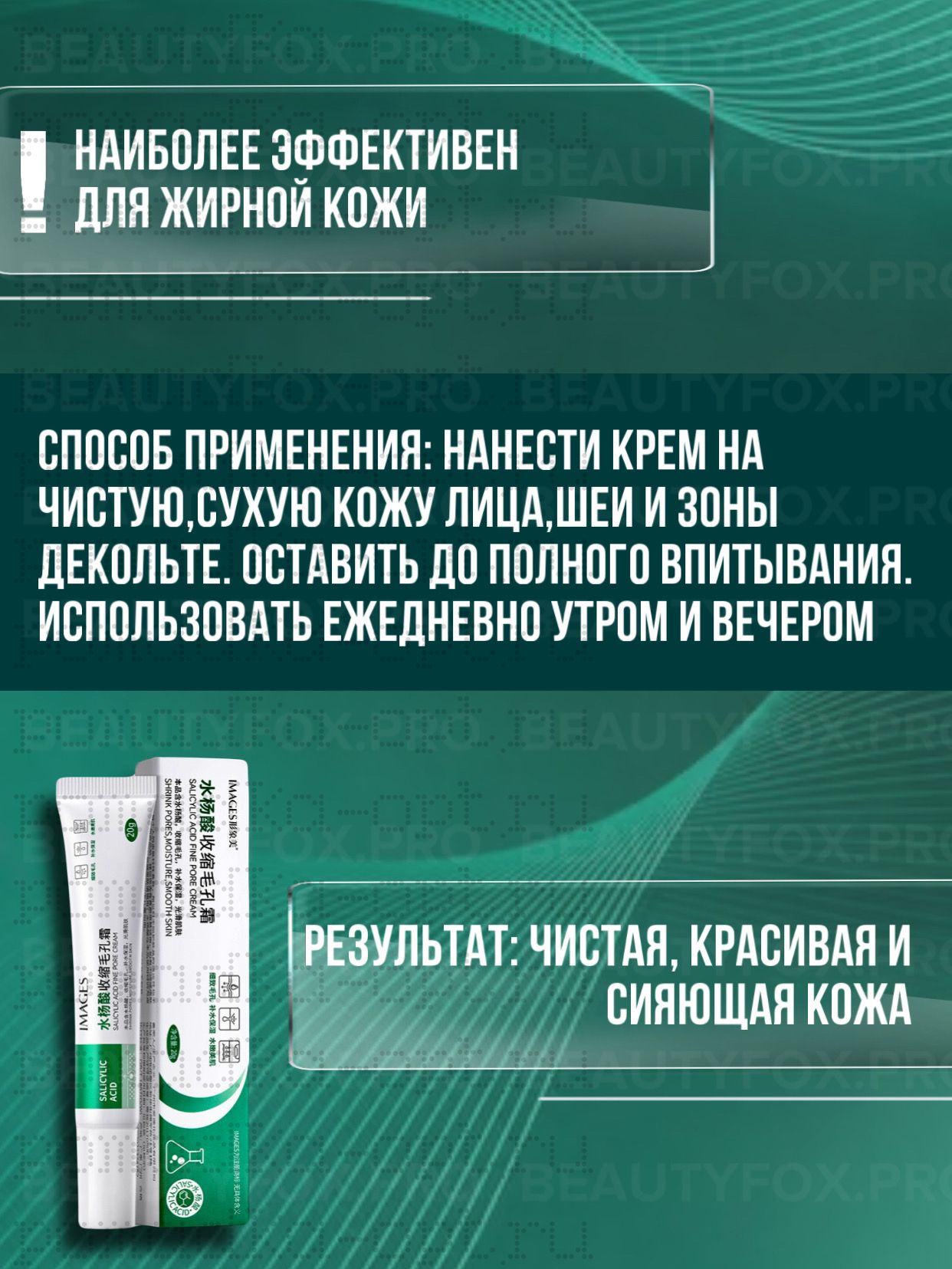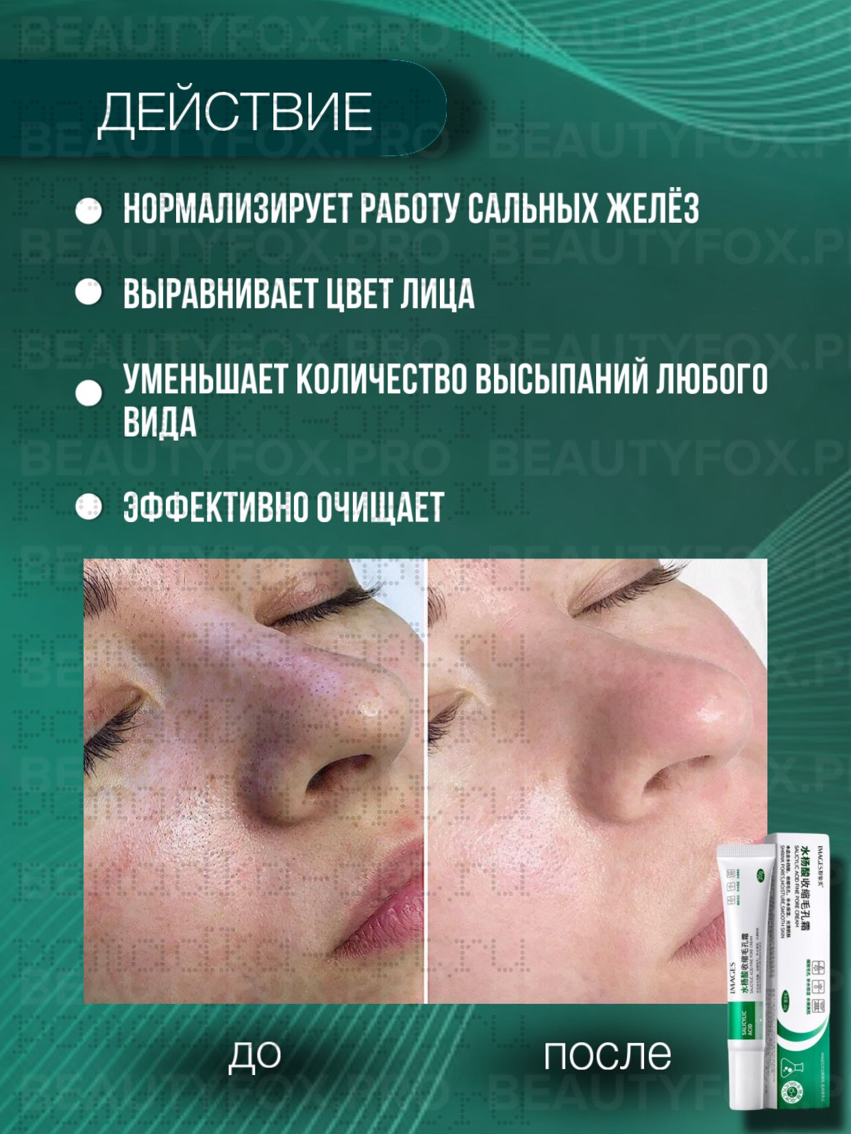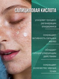 Крем безопасно воздействует на нейрорецепторы кожи, снимая хроническое воспаление. Уменьшает раздражение, борется с акне, очищает и сужает поры. Помогает коже стать чистой, ровной и красивой. Снимает хроническое воспаление, препятствует развитию акне. Мягко отшелушивает ороговевшие клетки, не раздражая кожу.