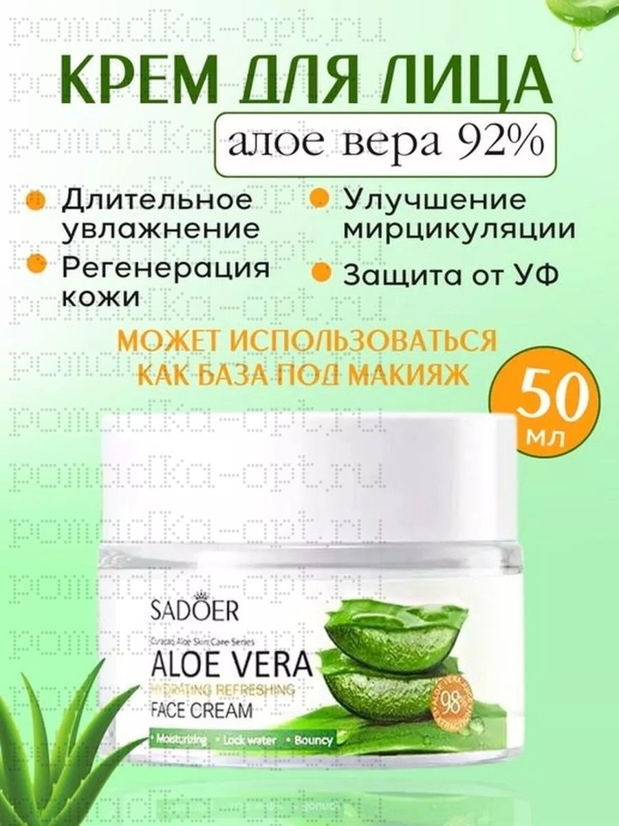 SADOER Освежающий и увлажняющий крем для лица с алое вера, 50гр.