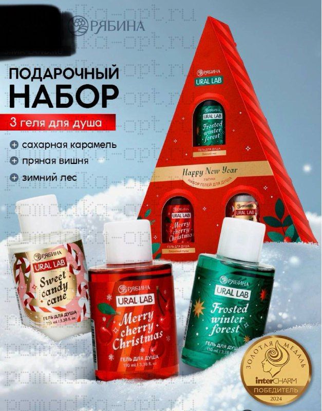 Гель для душа Happy New Year, набор 3 шт. × 100 мл,