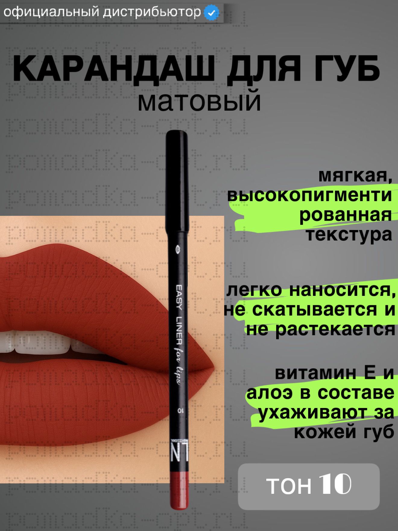 Карандаш для губ матовый тон 10