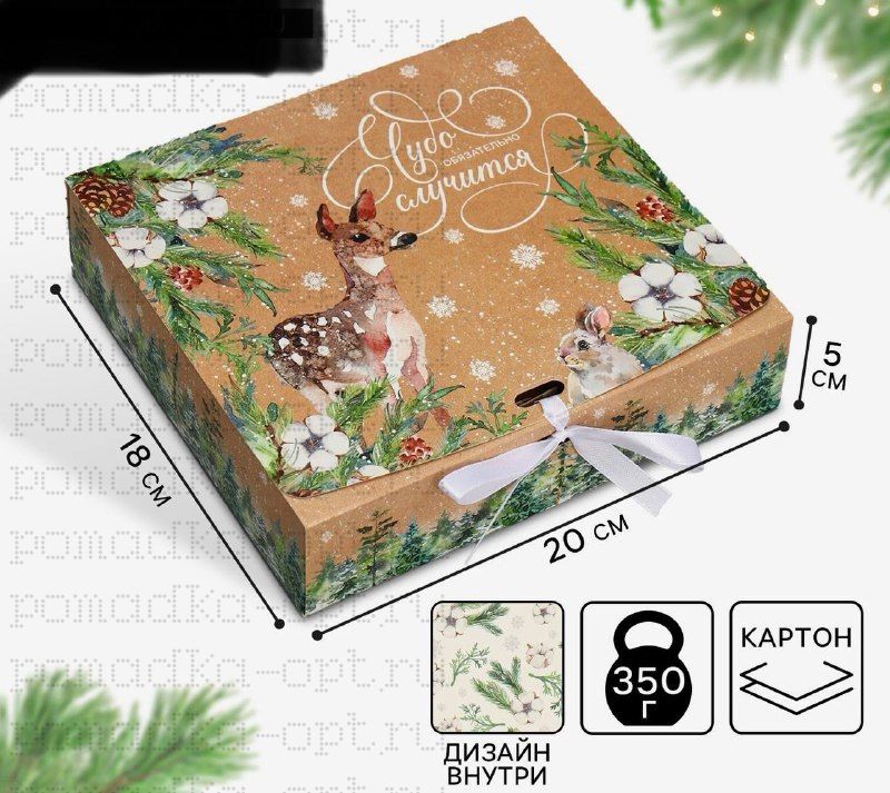 Коробка подарочная новогодняя складная двухсторонняя «Чудо обязательно случится», 20×18×5 см