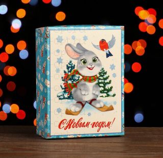 Коробка сборная крышка-дно без окна, "Зайцы", 16,5 х 12,5 х 5,2 см