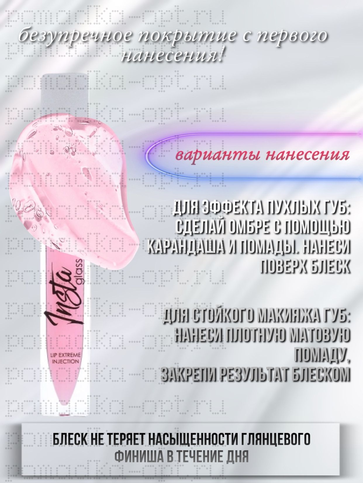 Жидкое стекло для губ Lip Liquid Glass создает ослепительное глянцевое сияние и сглаживает поверхность кожи губ. Стойкая текстура не скатываеться по контуру и в уголках. Блеск не теряет интенсивности глянцевого финиша в течении для.