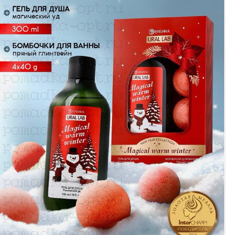 Новогодний подарочный набор косметики Magical warm winter: гель для душа, 300 мл и бомбочки для ванны, 4×40 г,