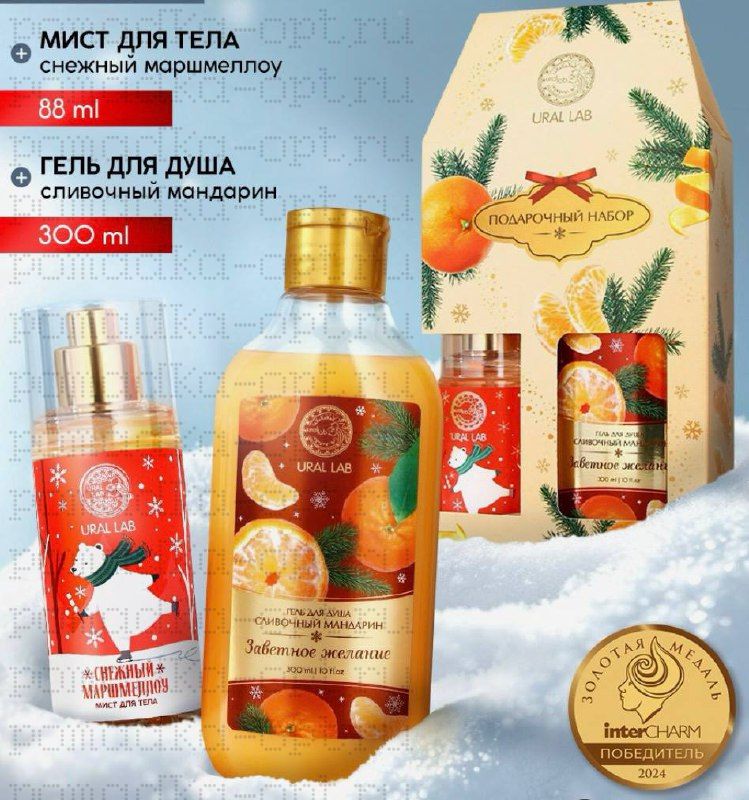 Новогодний подарочный набор косметики «Заветное желание»: гель для душа 300 мл и мист для тела 88 мл