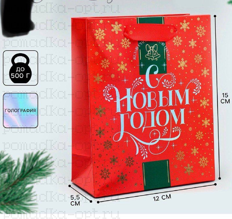 Пакет подарочный новогодний ламинированный «С Новым годом!», S 12 х 15 х 5.5 см