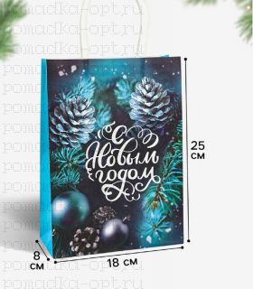 Пакет бумажный подарочный новогодний крафт «С Новым годом» 18×8×25 см