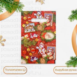 Пакет подарочный новогодний «С Новым годом», полиэтиленовый с вырубной ручкой, 20×30 см