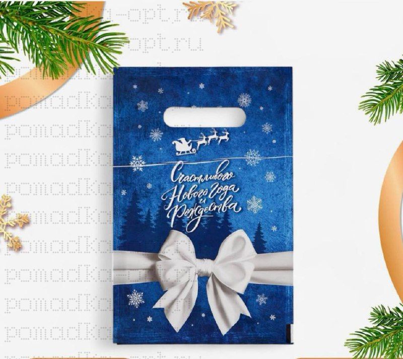 Пакет подарочный новогодний «Счастливого нового года и рождества», полиэтиленовый с вырубной ручкой, 20×30 см, 30 мкм