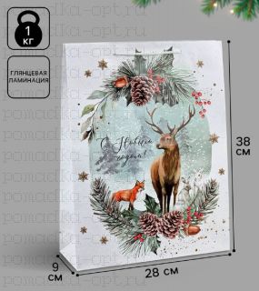 Пакет подарочный новогодний ламинированный «С Новым годом», L 28×38×9 см