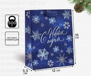 Пакет подарочный новогодний ламинированный «С Новым годом», S 12×15×5.5 см