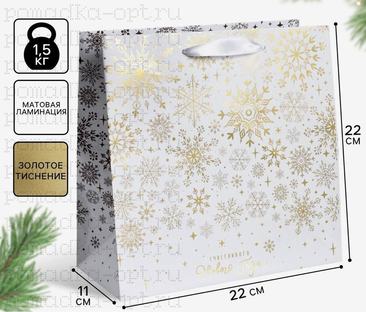 Пакет подарочный новогодний ламинированный квадратный «С Новым годом!», 22×22×11 см