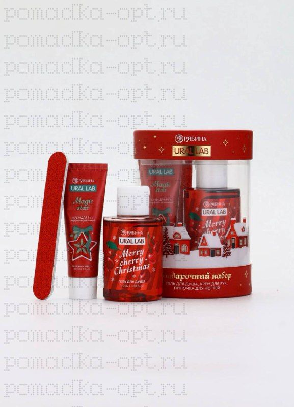 Подарочный набор косметики New Year Collection, гель для душа, крем для рук, пилочка, красный,