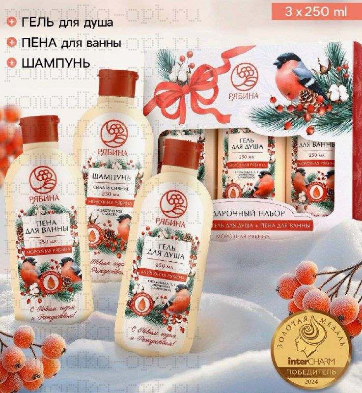 Подарочный набор косметики новогодний «С Новым годом и Рождеством», гель для душа, шампунь и пена для ванны 3×250 мл,