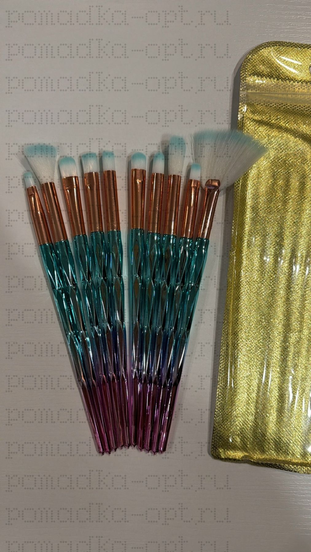 Кисти бирюзовый 10 шт тонкая косметичка